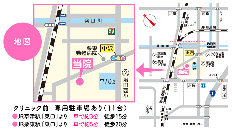 〈病院名〉 さとこ内科クリニック 〈所在地〉 〒520-3025 滋賀県栗東市中沢2丁目5番54号 〈電 話〉 TEL.077-554-7070